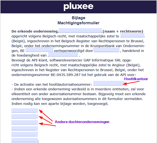 Vermeld bij het invullen van het document het Pluxee-autorisatienummer dat begint met 98.